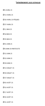 Les entraînements ont repris dimanche le 26 janvier 2014 au terrain de foot à OSTHOUSE.