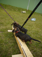 Et voilà comment les teckels alsaciens se préparent pour la Nationale d'Elevage les 17 et 18 août 2013, sous la direction de notre déléguée
