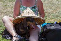 attention au soleil, papa préfère protèger sa fifille que sa tête...!!