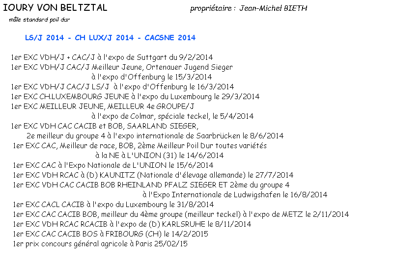 1er EXC VDH/J CAC/J LS/J à l'expo d'Offenburg le 16/3/2014