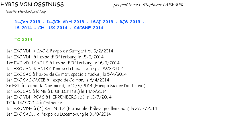 IDOLINA VON OSSINUSS propriétaire : Jocelyne SCHOEN